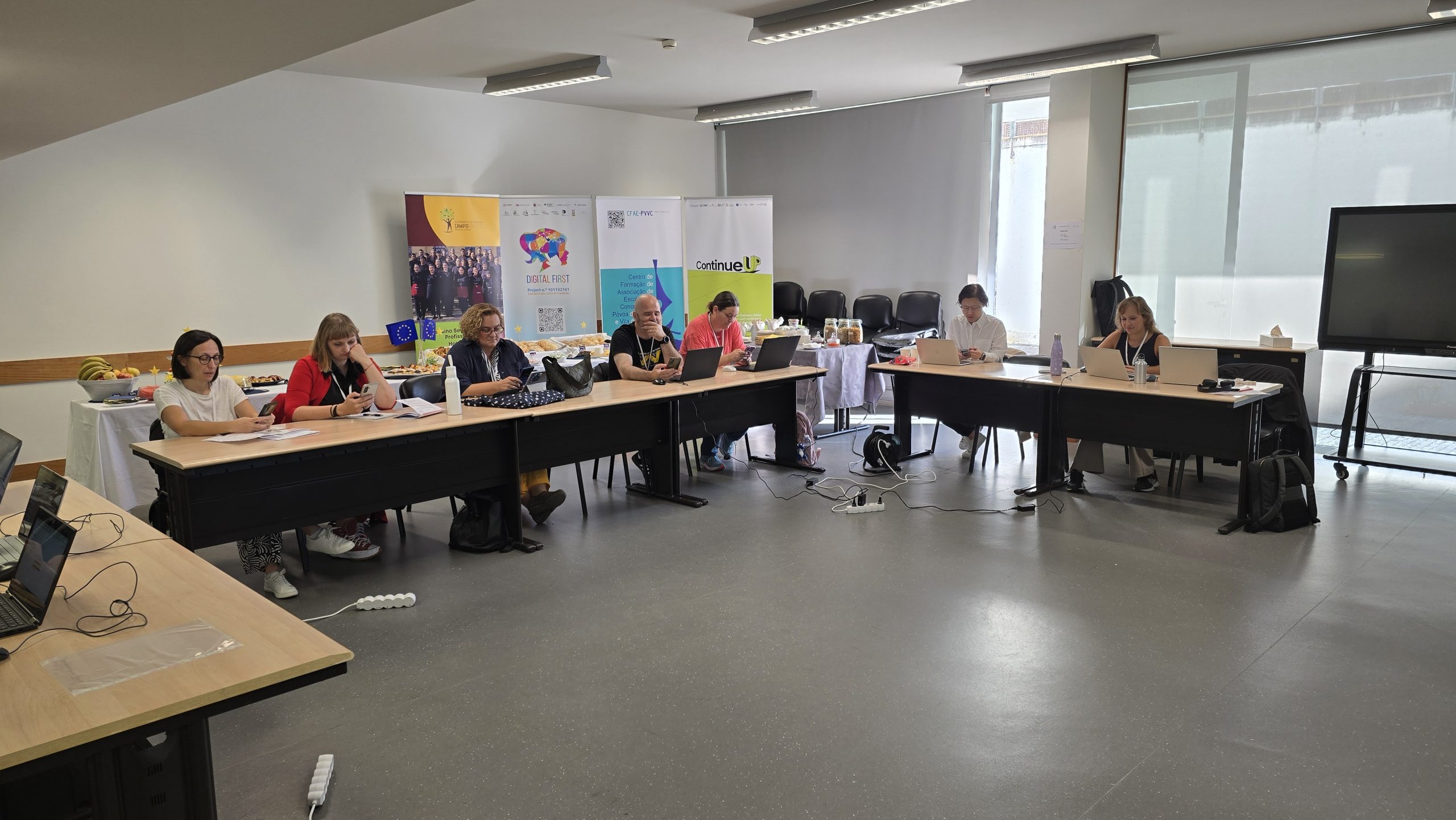 The first day focused on reviewing the progress achieved so far, from dialogue clubs led by Partners in Learning and the Informatics Teachers’ Competence Catalogue developed by the Faculty of Education – University of Ljubljana, to the teacher training materials prepared by CFAE Póvoa de Varzim e Vila do Conde for the upcoming training sessions. Dynamic discussions and joint planning sessions helped identify key priorities and challenges for the piloting phase ahead. The meeting was held in a hybrid format, enabling active participation of all consortium members through interactive digital tools, including those joining remotely.